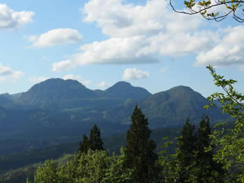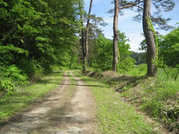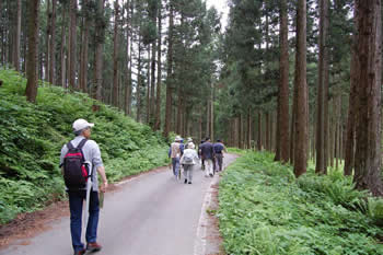 【森合峠の道】 森合峠は旧羽州街道宿場町金山の北の入り口である。明治の時代、英国の旅行家イザベラ・バードが記した「日本奥地紀行」の中で、ロマンチックな場所と称した金山、半丘陵の山(薬師山、中の森)の間の道が森合峠の旧街道である。 江戸時代以前の山形(羽前)と秋田(羽後)を結ぶ主要な道は、険しい神室の山々を越えていた有屋峠であった。江戸時代に入り、常陸の国から佐竹候が秋田久保田藩の領主として転封され、諸大名の参勤交代が行われるようになり、難所であった有屋峠の道を避け、金山宿から秋田に通ずる道が整備されるようになった。 金山以北の峠道として、森合峠、主寝坂峠、雄勝峠(院内峠)の旧羽州街道は佐竹街道とも呼ばれている。現在の旧道は三島通庸が整備した明治新道であり、全線が舗装されている。また、江戸時代の街道と交錯しており、地域による保全活動も行われている。諸大名が参勤交代に際し、供揃えを従え上り下りした峠越えの難儀を知ることのできる古道であり、峠には佐竹義和公、田山花袋などの文学碑もあり、杉木立の中を抜ける落ち着いた路となっている。 また、金山口の森合三本松付近は、慶応4年、戊辰戦争において新政府軍の薩長軍と奥州越列藩同盟軍仙台藩による激しい戦いの場となった。「戊辰戦争三本松戦跡」として戦争の悲劇を後世に伝える場として護られており、今も全国から訪ねる人が多い。 峠を越えると国道13号に接し、しばらくして日当りの松並木となる。江戸時代、全国的に主要街道の整備が進められ、新庄藩領内の街道には松を植えて並木道が造られ、一里塚を築き、上には目印の木が植えられて旅人の利便性が図られた。日当の一里塚には、左に松、右に桜(秋田県側から見て)が植えられていたと古い文書にはある。このあたりの松並木は、古い羽州街道の面影を偲ぶことができる数少ない場所である。 周辺マップ (金山町・西田 徹) ←旧街道(明治新道) ←峠からみた金山の町 ←峠に建つ歌碑 ←戊辰戦争史跡三本松 ←日当の松並木【主寝坂峠】 |